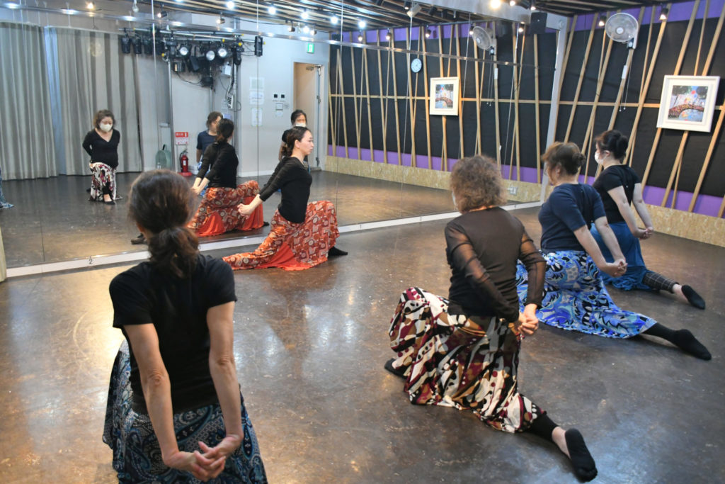 股関節や腰まわりなど、ポーズで圧をかける、解放する、を繰り返して筋肉を温めながら、踊りに必要な柔軟性を無理なく高めていきます。